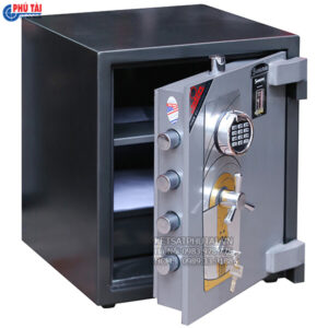 Mở két cách 1- chế độ đơn: mở chìa + đặt vân tay hoặc bấm mã điện tử.